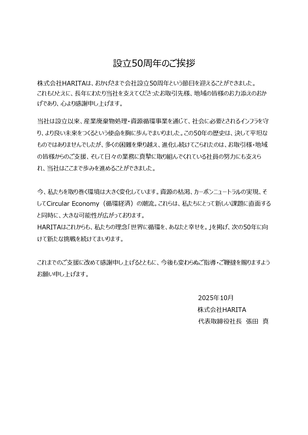 設立50周年のご挨拶
