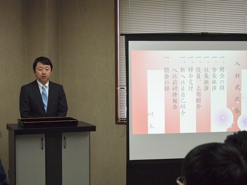 平成27年度「入社式」を行いました。会長、社長の祝辞の後