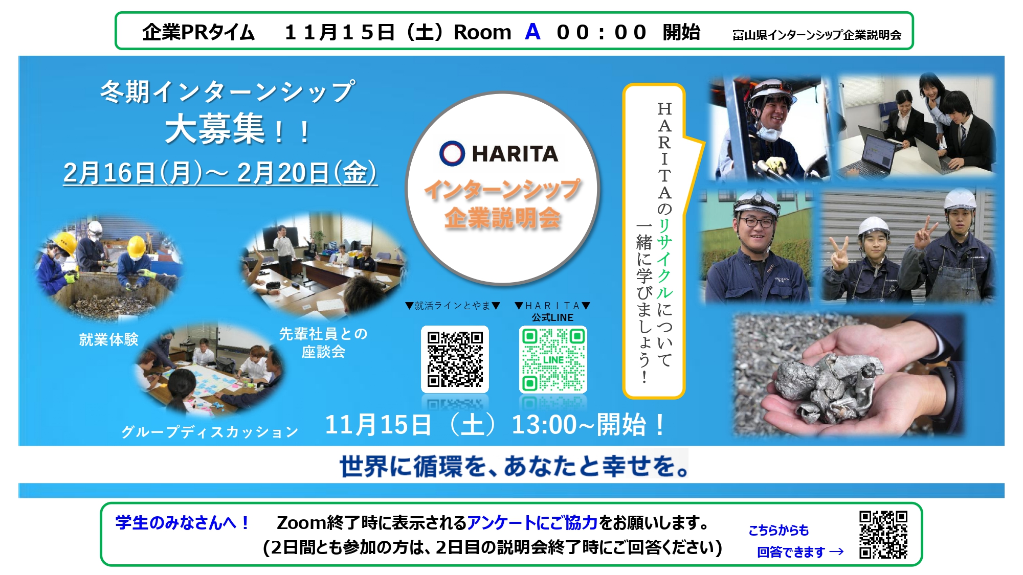 2025年11月07日 11月15日(土)富山県主催のオンライン説明会「富山県インターンシップ企業説明会」に参加!